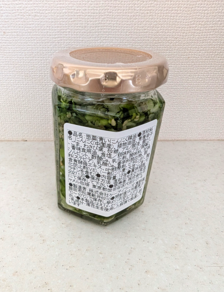にんにく・青唐辛子・ゴマ・ワサビ葉入り。