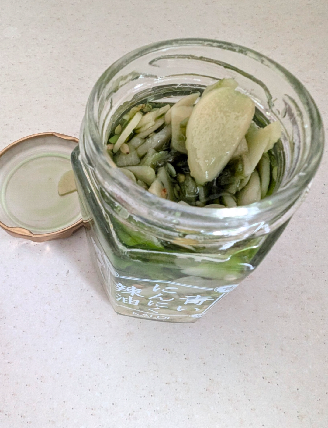 にんにく・青唐辛子・ゴマ・ワサビ葉入り。