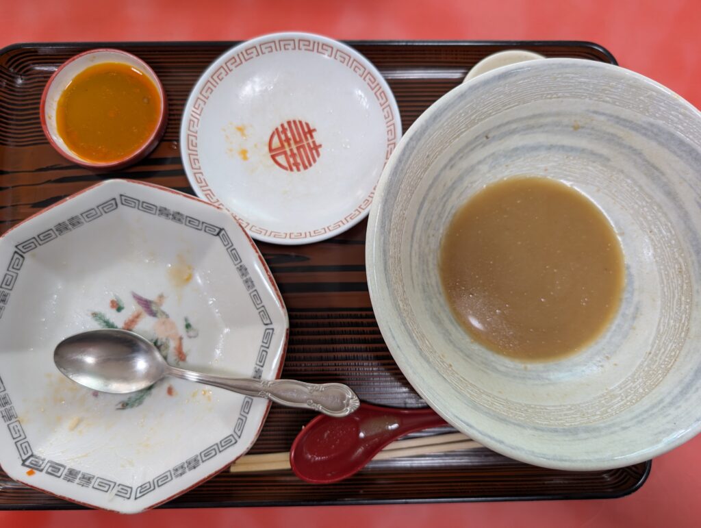 卵とハムの塩梅も丁度良くKちゃん思わず辣油でピリ辛にして味変しちゃいました。