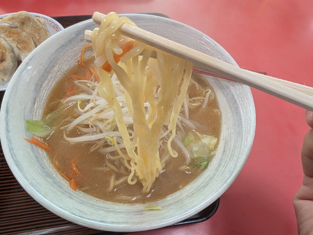 味噌ラーメンのスープも想像してたおいしさ。麺も定番の中華麺ですね。少しちじれて歯ごたえも