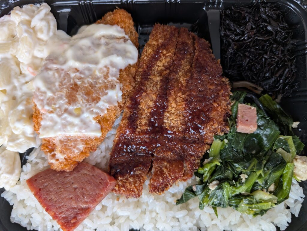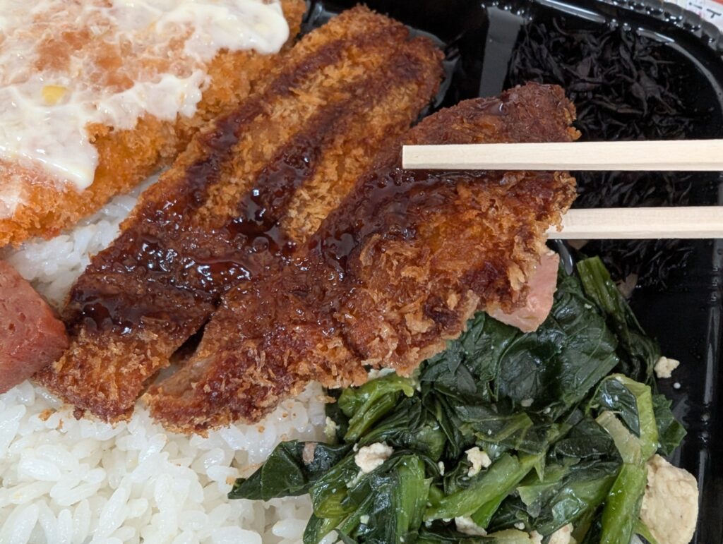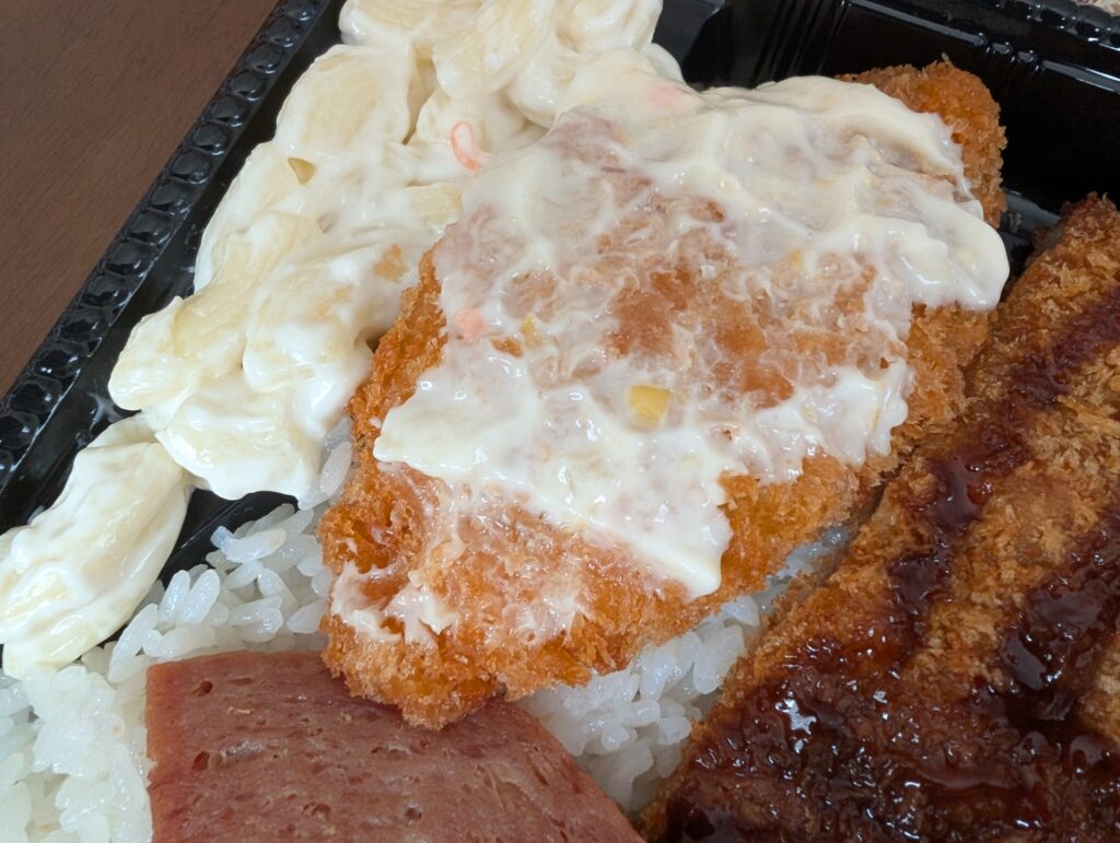 とんかつや魚フライ、ポークにマカロニサラダなど、沖縄の弁当らしいおかずがしっかり入っていて満足感のある内容でした。