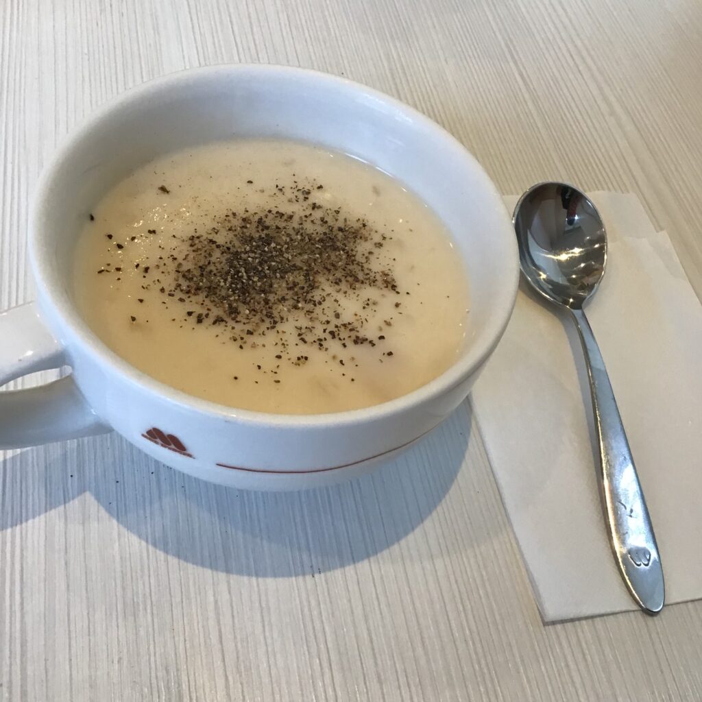 まずは、クラムチャウダ〜スープ。
