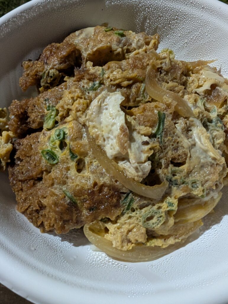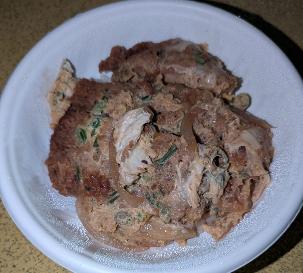 チキンカツの衣にしみた出汁が良い味付けで、少し濃い目かな