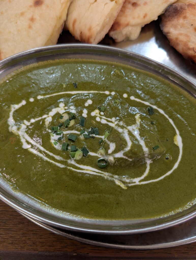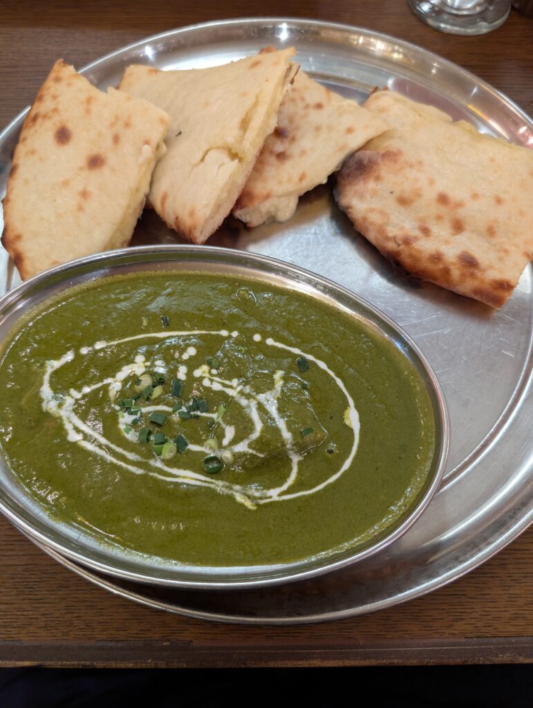 Kちゃんはほうれん草のチキンカレーとチーズ入りのナンを注文